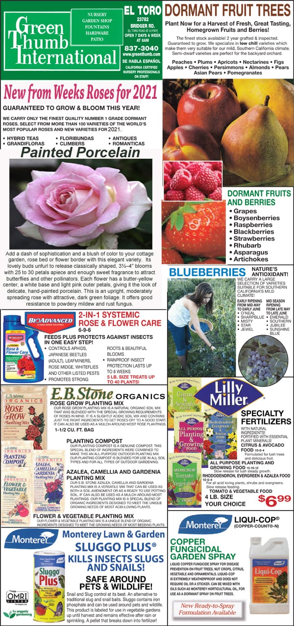 Front page of a garden center near me specializing in plants and services for Southern California.
