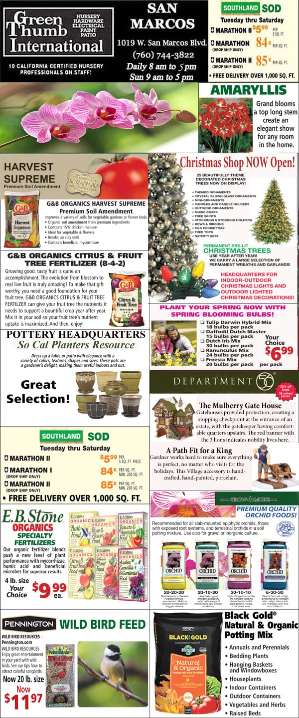 A flyer showcasing the best variety of plants and flowers at a top-rated nursery in SoCal.