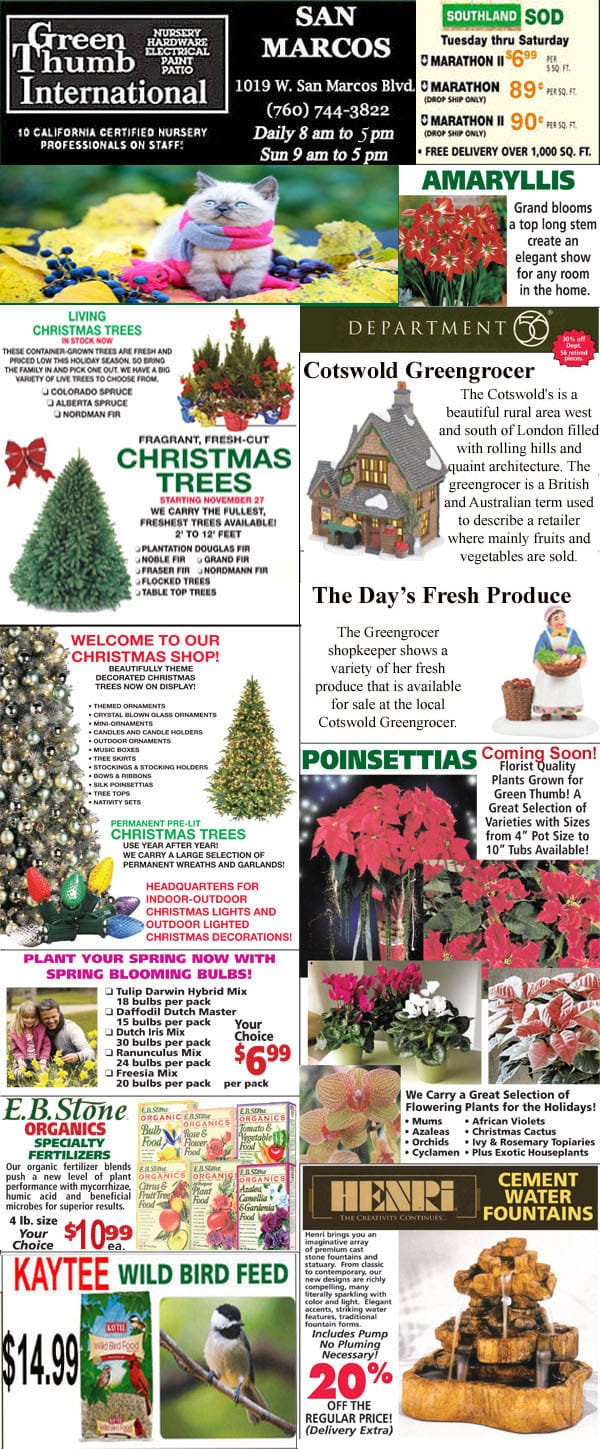 A flyer showcasing the best plants and flowers at a nearby garden center.