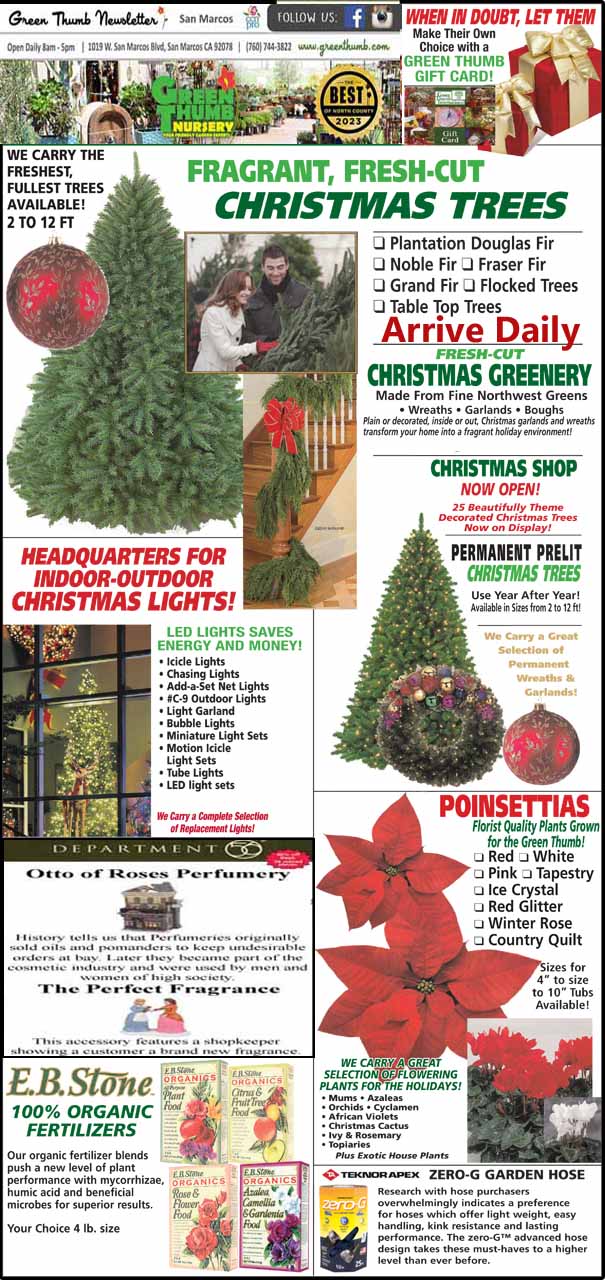 A newspaper ad featuring christmas trees and poinsettias.