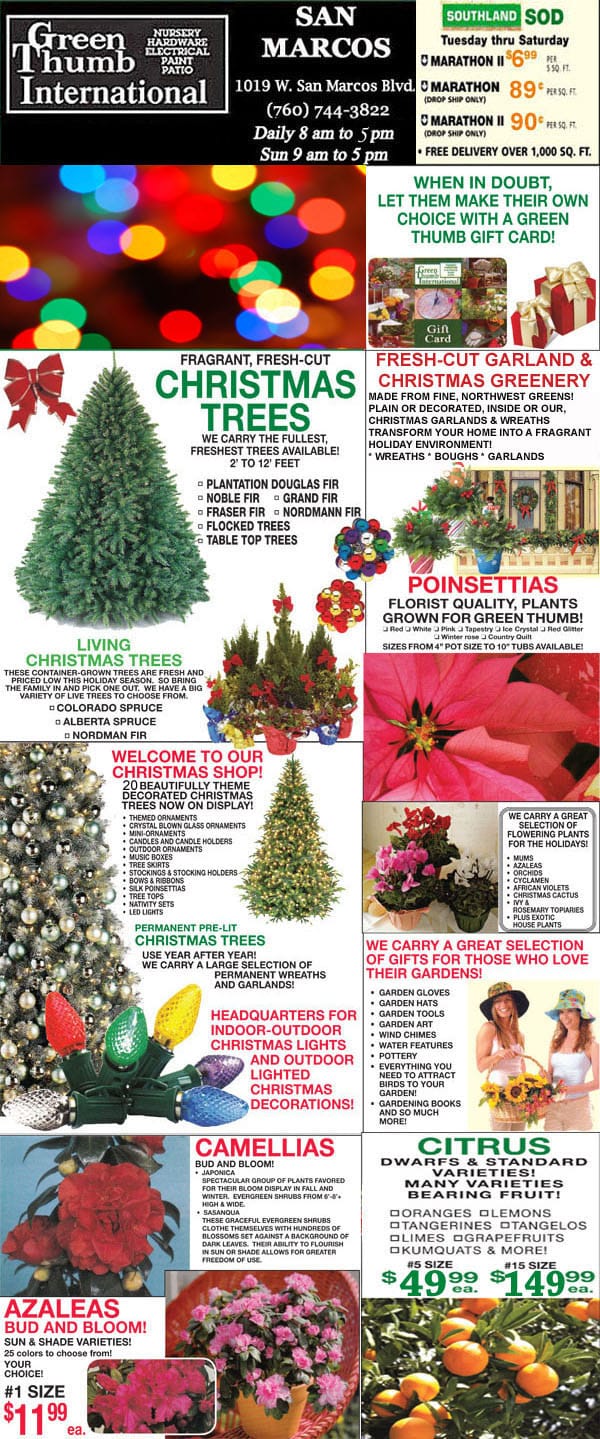 A flyer advertising the best plant nursery's Christmas tree sale near me.