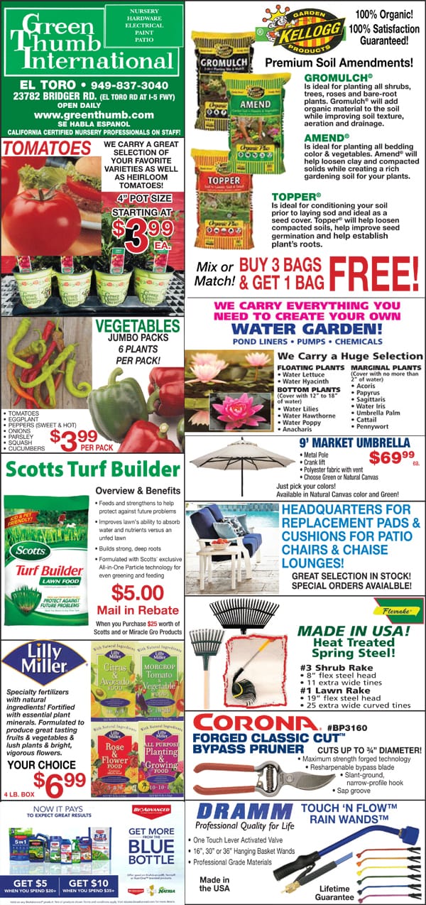 A flyer advertising a nursery near me with a variety of items for sale.