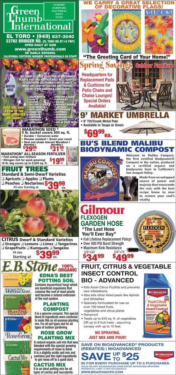 A flyer for a garden center near me in Southern California.
