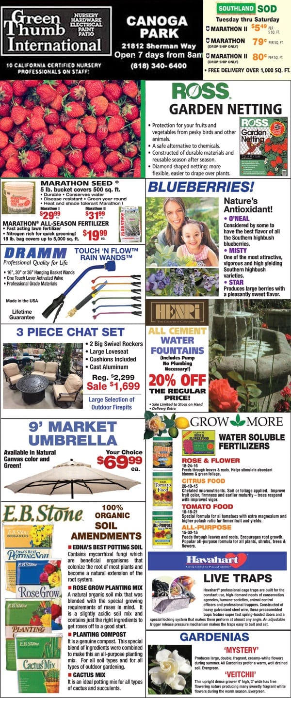 A flyer with a variety of gardening products.