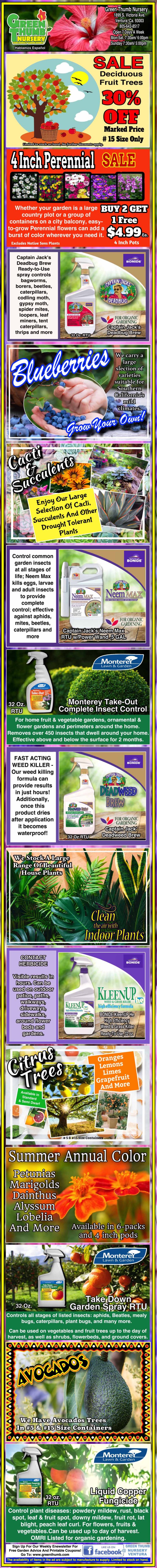 A vertical collage of various agricultural product advertisements, showcasing fertilizers, growth enhancers, and fruit-specific solutions with colorful images and descriptive text.