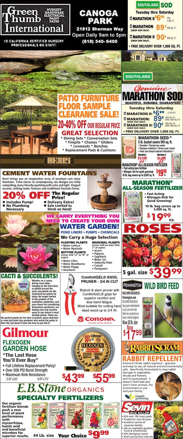 A newspaper front page featuring a stunning picture of flowers and plants, highlighting the best garden center near me.