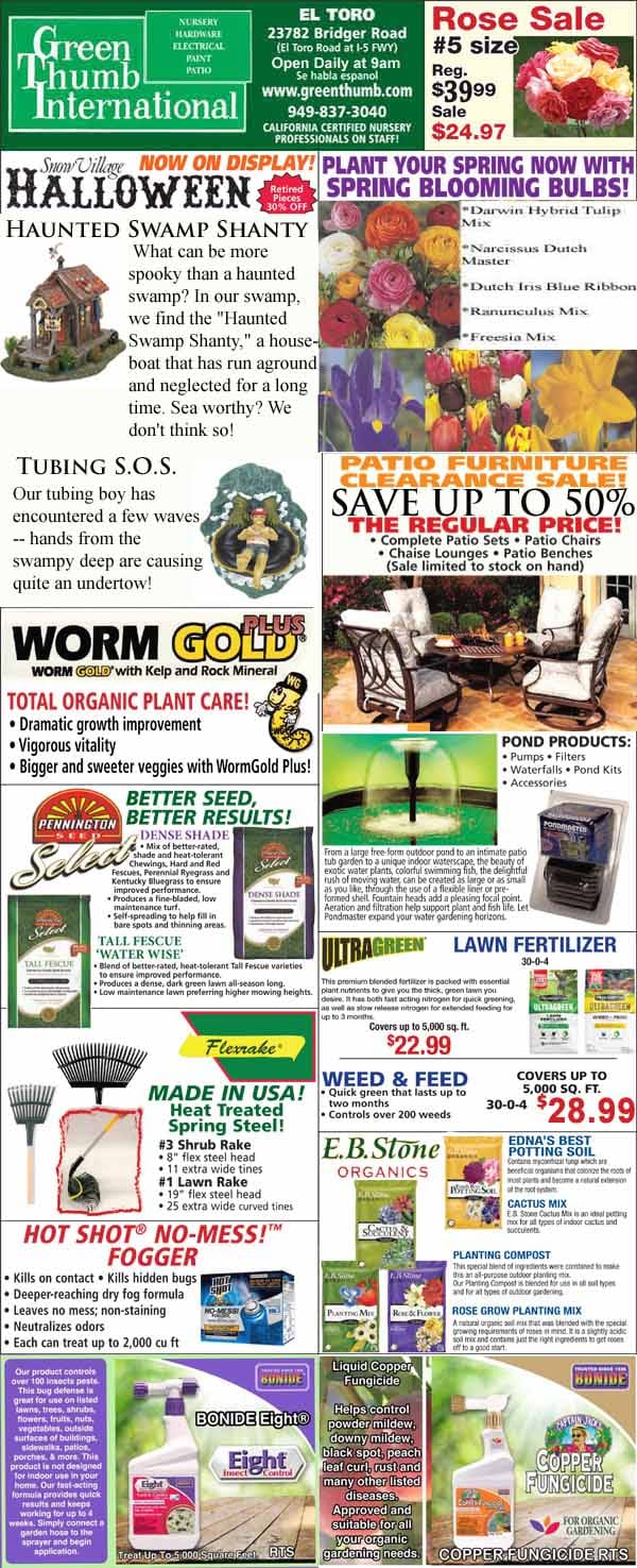 A newspaper's front page showcasing a variety of products from the best plant nursery near me.