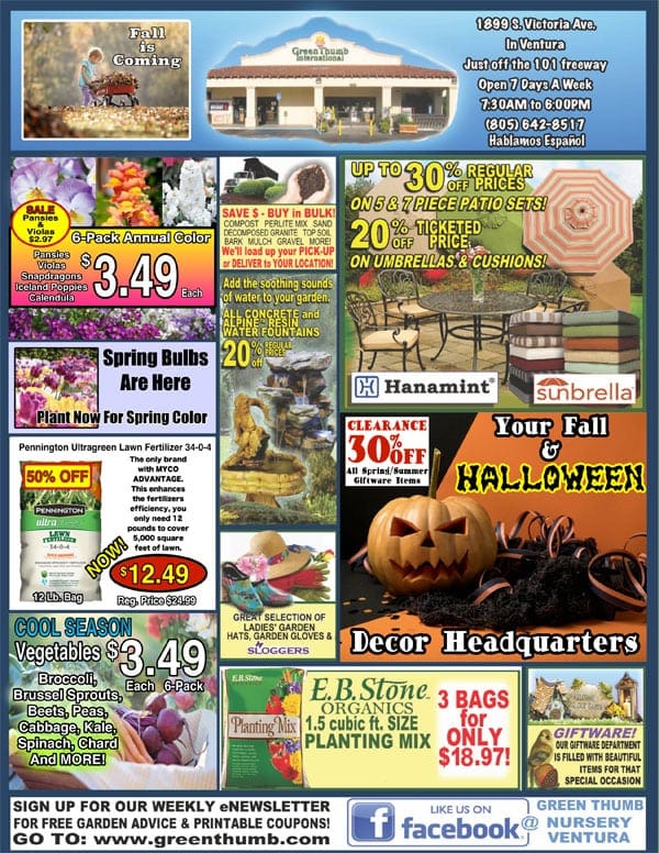 A flyer featuring a diverse selection of items available at a nearby garden center.