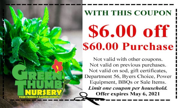 Nursery coupon at a SoCal garden center.