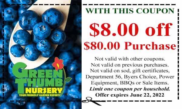 Green nursery coupon for blueberries.