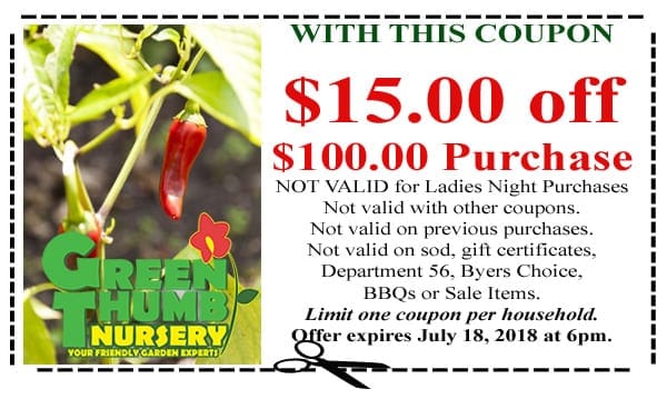 A green chilies coupon for a Southern California garden center.