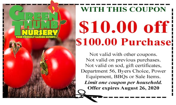 A greenthumb coupon for a 10% off purchase at the best garden center near me.